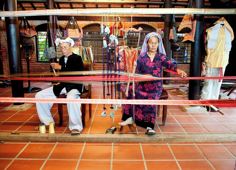 Delve into the rich handicrafts of the Champa people and discover traditional textile-making techniques at the Vietnamese silk weaving house.