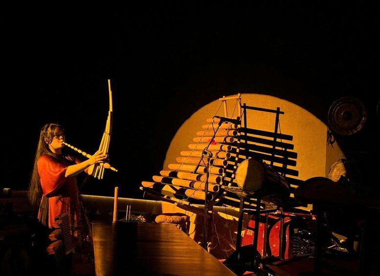 Be enchanted by 12 chapters of authentic Vietnamese folk music, performed with over 30 rare traditional instruments, composed by the renowned musician Trần Mạnh Hùng. The state-of-the-art stage is equipped with 3D immersive audio technology, ensuring every note resonates around you.