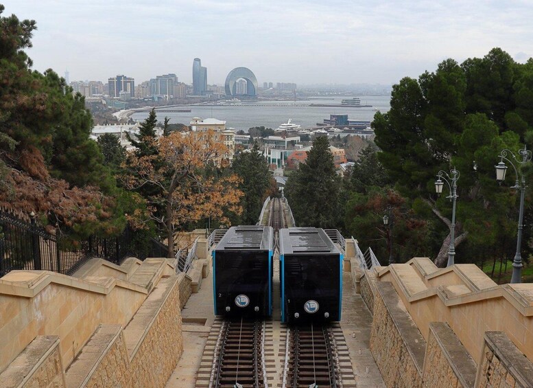 Next, we take the funicular up to Highland Park, where you’ll enjoy one of the best panoramic viewpoints in the city. From here, you can admire Baku Bay, the Caspian Sea, and the skyline crowned by the iconic Flame Towers. Your guide will explain their symbolism and the role they play in modern Baku.