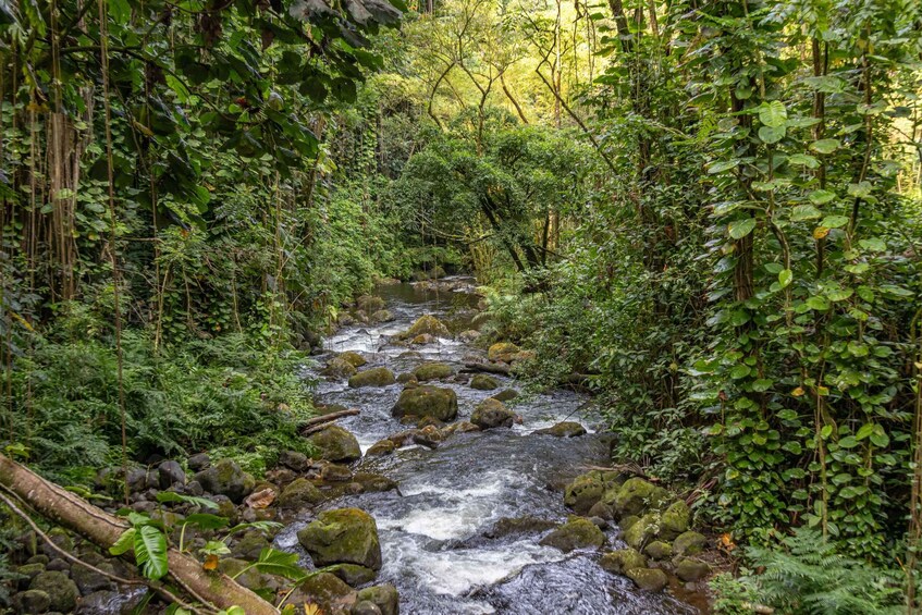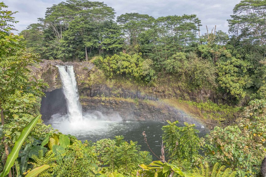 Embark on your Big Island waterfall exploration with a convenient pickup from the Hilo cruise ship terminal. The journey begins at the iconic Wailuku River State Park, where you'll be captivated by the majestic beauty of Boiling Pots and Rainbow Falls. Witness the picturesque cascade of Rainbow Falls as it gracefully descends over a legendary cave. Just a mile upstream, encounter the intriguing Boiling Pots—an extraordinary feature of the Wailuku River shaped by the forces of ancient lava flows. Gain insights into Hawaii's geological wonders and volcanic legacy as you immerse yourself in the natural splendour of these iconic sites.