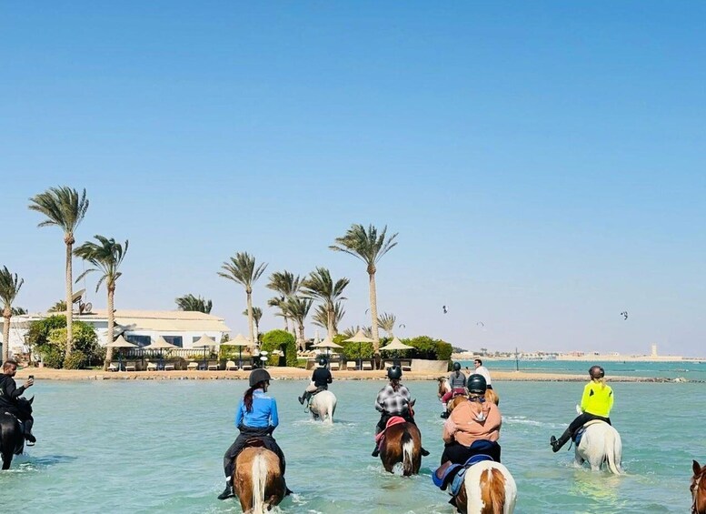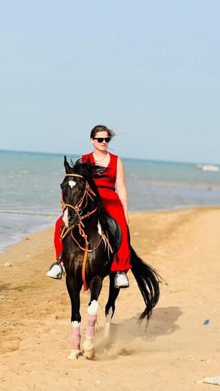 Enjoy a 3-hour adventure riding through stunning desert landscapes and along the beach. Feel the thrill of swimming with your horse in the sea, creating unforgettable memories. Perfect for all riding levels - Free transfer is provided from Hurghada hotels