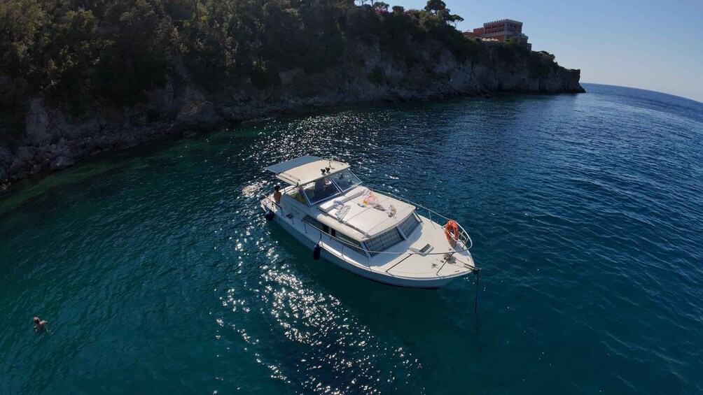 Enjoy an unforgettable day exploring Ischia by boat. You will depart from the port of Forio, where you will board the boat with an experienced skipper and his assistant. You will cruise along the island’s coastline, discovering enchanting caves such as the Grotta dell’Amore (Cave of Love) and hidden coves that are accessible only by boat.