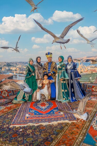 This option includes a photoshoot on the terrace with two different views featuring the Suleymaniye mosque and the Istanbul Bosphorus. It also includes one flying dress and digital delivery of the photos.