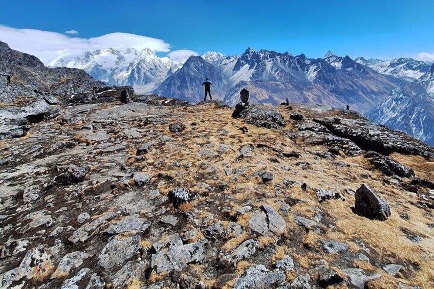 Leaving Sele Le Pass, we will hike up to the high-altitude passes, Sinion La (4440m.|2758ft.), then Mirgin La (4480m.|2783ft.) and Sinelapche Bhanjyang (4645m.|2886ft.). We will see the spectacular panoramic view of Mt. Jannu, Everest, Makalu, Baruntse, Chamlang, and Kanchenjunga during our ascent. We descend to Tseram and stay overnight over there.