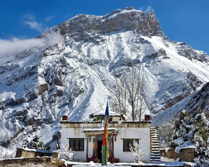 Drive to the sacred Muktinath Temple, a revered pilgrimage site for Hindus and Buddhists. After exploration, descend via Jomsom and Kagbeni to the charming apple village of Marpha for overnight.