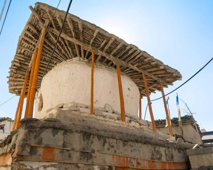 Travel across the trans-Himalayan desert landscape, passing Samar, Ghami, and Dhakmar villages. Explore the historic walled city of Lo Manthang, then continue towards the Korala border near Tibet. Visit the ancient caves and monastery of Chosar before returning to Chusang.