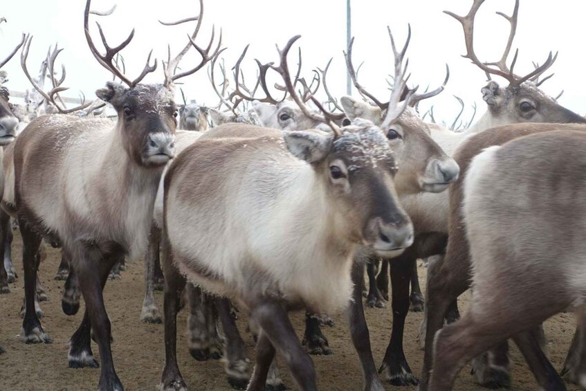 A highlight of the tour is the visit to a local reindeer corral. Reindeer have been central to Sámi culture for thousands of years, and here you have the chance to see them up close in a natural and respectful environment. You can feed the reindeer, observe their behaviour and learn about their importance in the Arctic ecosystem. Warm drink lingonberry drink are served during the stop, creating a comfortable moment where you can enjoy the atmosphere and take memorable photos.