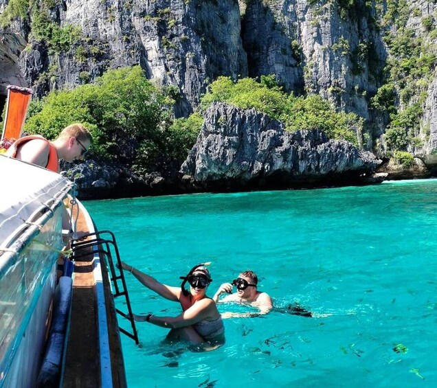 Join fellow travellers on this shared 4-island snorkelling tour by longtail boat from Ko Lanta. Discover hidden gems, snorkel in crystal-clear waters, and enjoy a delicious lunch on the beach.