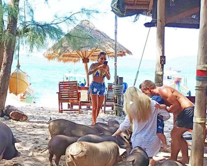 After a short crossing from Koh Tan, we reach the nearby neighbouring island. Welcome to the beautiful island of Koh Mudsum. Here the world stands still, because there is still no civilisation, running water or electricity. Amazingly, there are a few woolly pigs here on the white sand beach, like in the Bahamas. Enough time to go kayaking (depending on sea conditions already at Koh Tan), swimming, or relaxing on the beach.