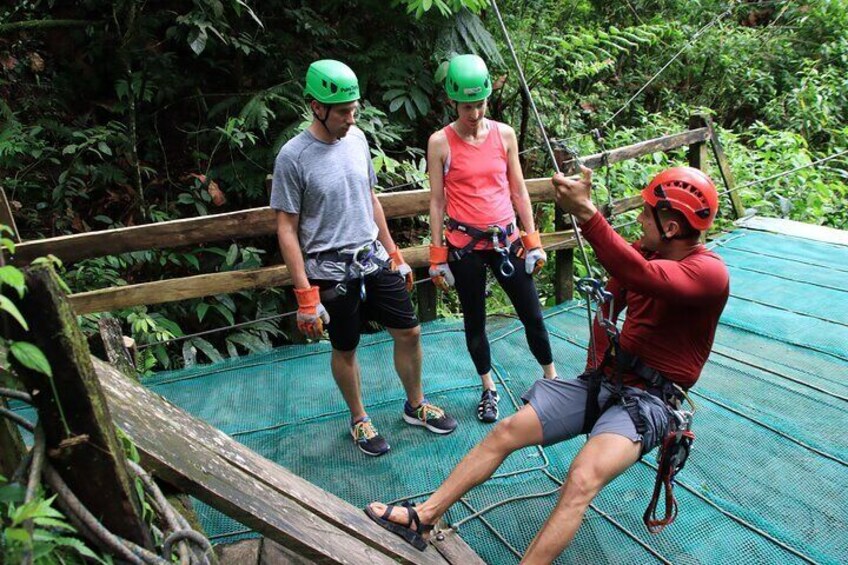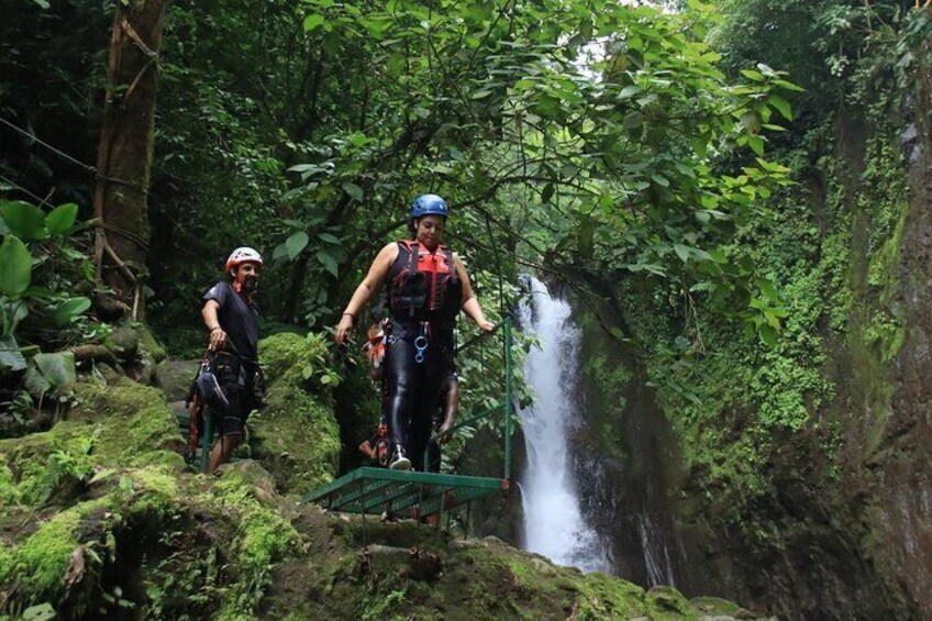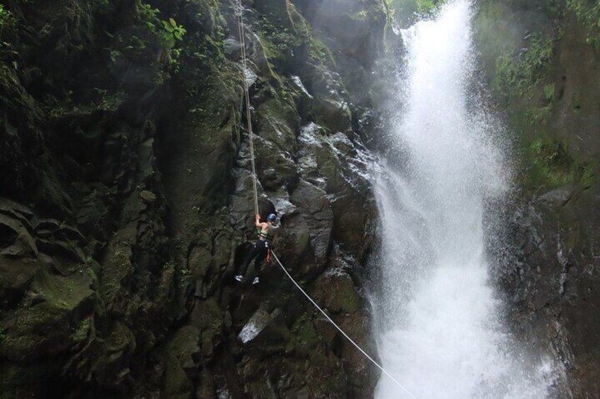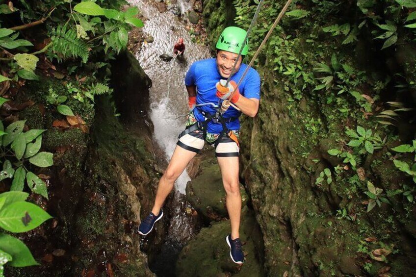 Embark on an unforgettable adventure in Costa Rica with our Rainforest Falls Experience! Begin with a scenic drive to our exclusive rainforest river, where you'll be greeted by stunning vistas and our modern facilities, including lockers, bathrooms, and showers. Feel the thrill as you rappel 25 metres down a majestic waterfall, then dive into a natural playground with swimming, rock leaping, and optional jumps from 1-10 metres. Unwind afterwards with fresh tropical fruit and a delicious Costa Rican lunch at our base in La Fortuna. Enjoy professional photos of your adventure, captured by our on-site photographer. Safety is our priority with expert guides and top-notch equipment. Join us for a day of adrenaline and nature's beauty!
