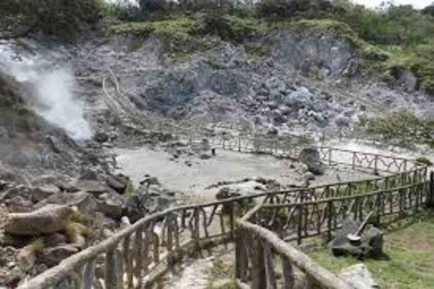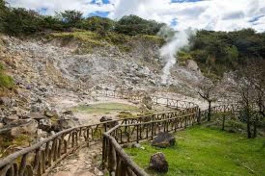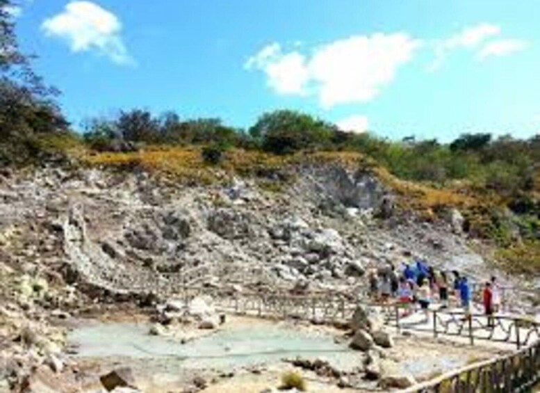 After exploring the active area, you will enjoy a therapeutic volcanic mud bath. Rich in minerals, volcanic mud is known for its multiple skin and health benefits, helping to detoxify and rejuvenate the body. Following this relaxing treatment, you’ll unwind in naturally heated thermal waters, allowing your muscles to relax while surrounded by lush tropical scenery.