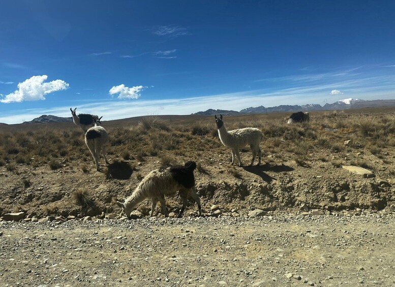 The route is dotted with charming stops, allowing you to marvel at the spectacular views of Huayna Potosi, Chacaltaya, Lake Titicaca, alongside glimpses of a mining cemetery and the rich biodiversity of the area.
