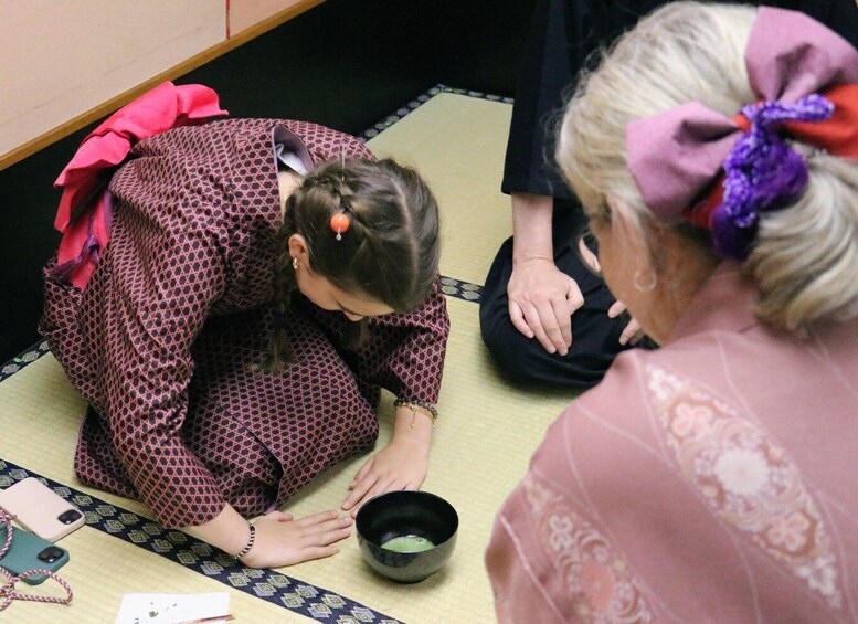 ➤ The hostess will entertain the guests according to the traditional manners prescribed. The master of the tea ceremony will serve matcha (powdered green tea) and serve it to the guests.