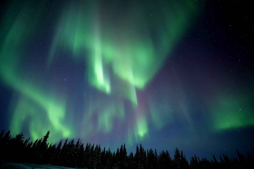 You’ll witness gentle waves of green light ripple across the sky — sometimes joined by pinks or purples — moving like dancing curtains of light above the trees and across the stars. It’s one of nature’s most breathtaking sights, and one you’ll remember forever.