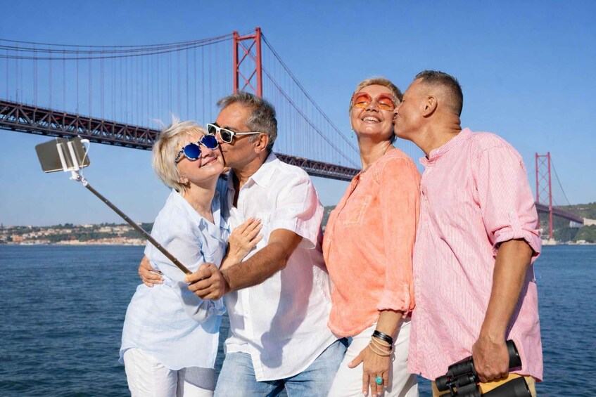 As we depart from the bustling city, the waters of the Tagus River reveal stunning views of Lisbon's iconic landmarks. In this setting of architectural splendour, we venture into the vast expanse of the ocean, with our eyes set on the horizon in search of the graceful inhabitants of the sea.
