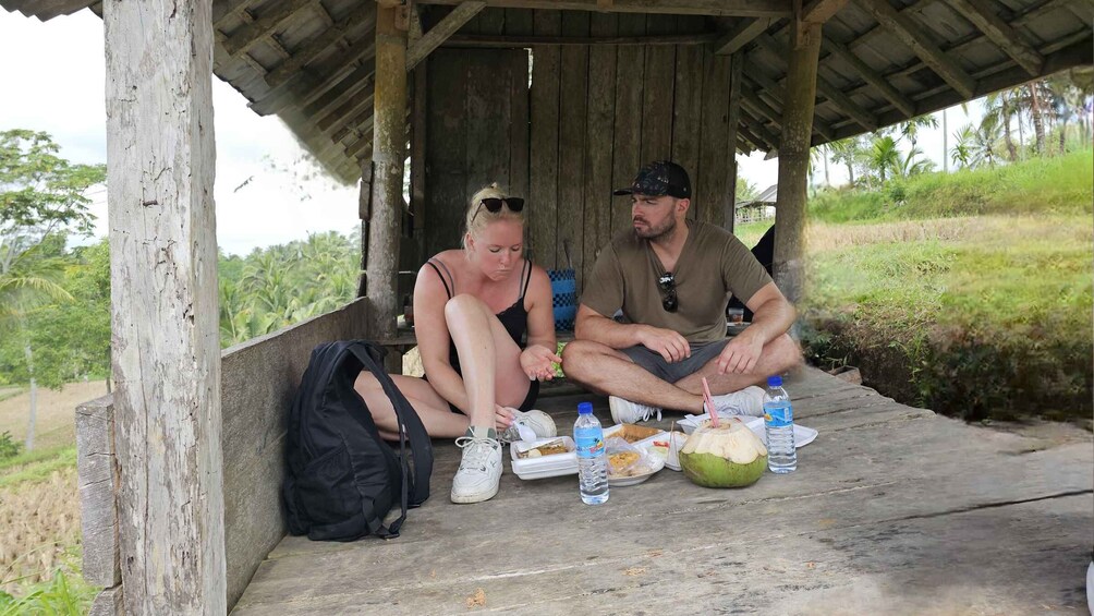 First activity is rice field trekking, offers a unique opportunity to experience the rural landscapes, traditional farming practices, and cultural heritage of these regions. Enjoy local snacks with fresh coconut water served straight from the coconut in the middle of the rice fields.