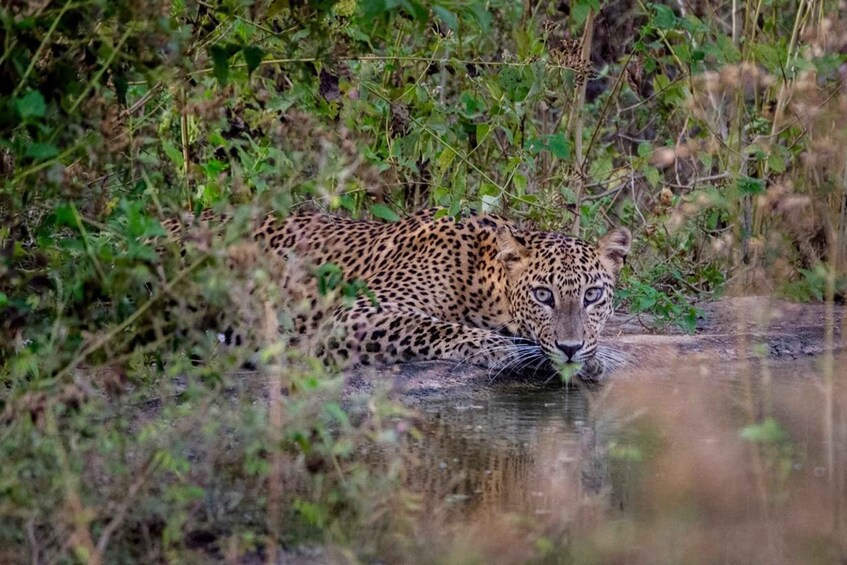 Our expert guides will point out the smaller wonders too, like colourful bee-eaters, the striking Sri Lankan junglefowl, or even a crested serpent eagle perched high above. As the sun rises higher, we’ll head to a scenic spot for a brief stop, where you can enjoy refreshments amidst breathtaking views of Yala’s rugged landscape. It’s a magical time to connect with nature before the heat of the day sets in.