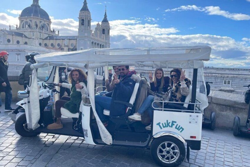 Discover the historic essence of Madrid in just the hour aboard our comfortable and exclusive tuk tuk. This dynamic and complete tour allows you to explore the city’s most iconic landmarks and charming old-town streets, all accompanied by a professional guide who will share fascinating stories, hidden secrets, and historical insights.