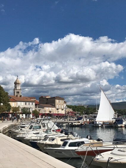 Kolejny przystanek to stolica wyspy Krk – miasteczko Krk. Spacerujemy urokliwymi uliczkami, odwiedzamy zamek rodu Frankopanów. A po zwiedzaniu robimy przerwę na kawę i deser. I to nie byle jaki – możecie tu skosztować lokalnego tortu Krčka kneginja, która najlepiej smakuje z widokiem na port.