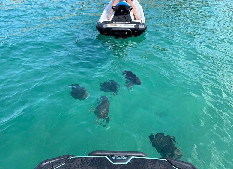 ADD FISH FEEDING! – Enhance your snorkelling adventure by adding a unique fish-feeding experience, where you can get up close and personal with the vibrant marine life for $49 per ski!
