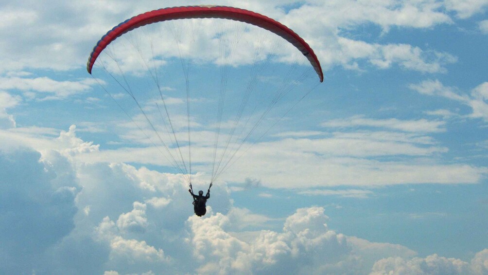 You will feel the thrill of free flight while the pilot tour guides the paraglider.