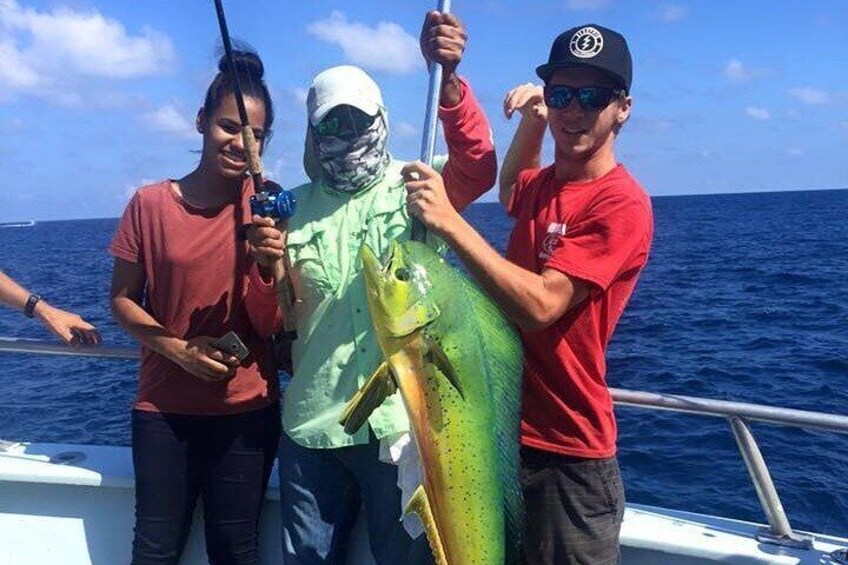 Guests will be enjoying a half day deep sea fishing trip out to the Atlantic Ocean. It is about a 4-5 hour trip. We welcome first timers or experienced fishermen on our boat. Our crew will be there to guide and help anyone that needs assistance. They will have a tutorial on how to use the equipment if you are not familiar with our fishing gear. During our day trips we typically will be drift fishing looking to catch a variety of fish such as kingfish, bonitos, snappers, jacks, tunas, groupers and occasionally sailfish and mahi-mahi. At night we anchor and bottom fish mainly for snappers like yellowtails, muttons and mangroves.