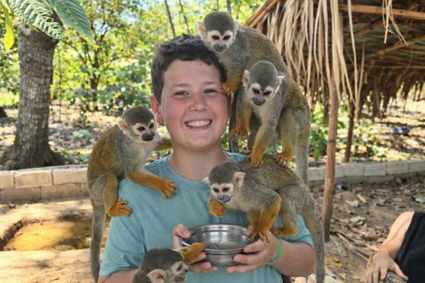 We'll begin this wonderful adventure with a unique encounter with adorable capuchin monkeys, where you'll have the opportunity to interact with them and capture unforgettable moments for approximately 45 minutes. Afterwards, you'll enjoy an exquisite tasting of locally produced coffee or hot chocolate while getting a close look at tropical fruit plantations and the tobacco cultivation process. You'll also have time to purchase souvenirs and typical handicrafts from our beautiful country.