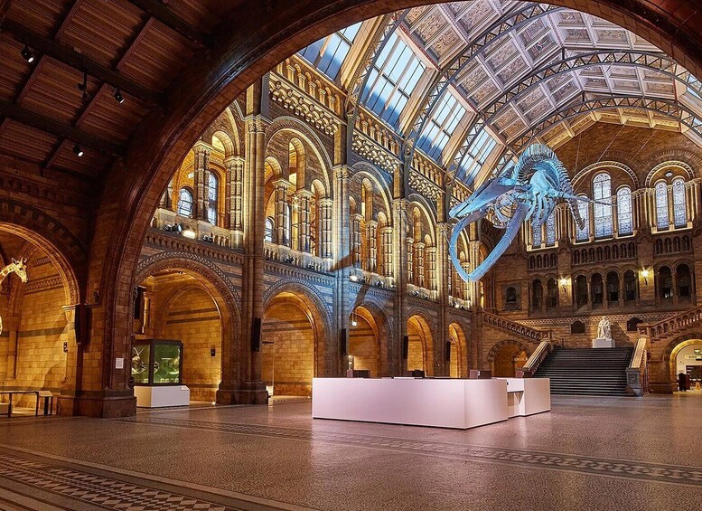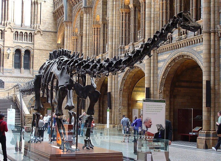 Embark on an extraordinary journey as our expert guide takes you through the Natural History Museum, a sanctuary of Earth's marvels and natural wonders. Your adventure begins in the awe-inspiring central hall, where the imposing Diplodocus skeleton awaits. This massive dinosaur, with its long neck and robust body, provides a breathtaking glimpse into the prehistoric era, captivating you with its grandeur and historical significance.
