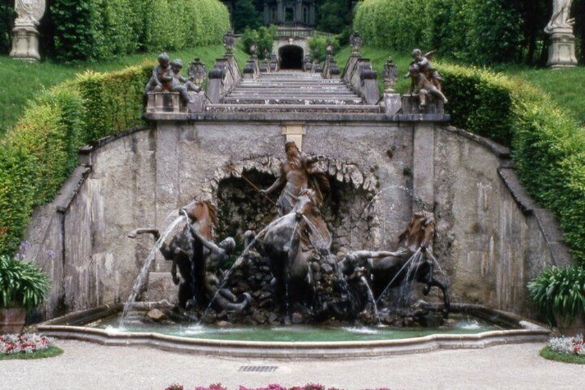 Linderhof Palace is the only residence King Ludwig II lived to see completed. Hidden in the secluded Graswang valley, this Rococo masterpiece is surrounded by magnificent terraced gardens and striking Alpine peaks. Admission depends on your booking: it is fully included for 'With Entry Ticket' guests. For basic 'Private Tour' bookings, entrance to the palace interiors is optional and can be paid directly at the ticket office on-site, giving you the freedom to explore at your own pace. Wander through the golden halls and the meticulously designed park for a refined Bavarian experience before we move to our next destination.