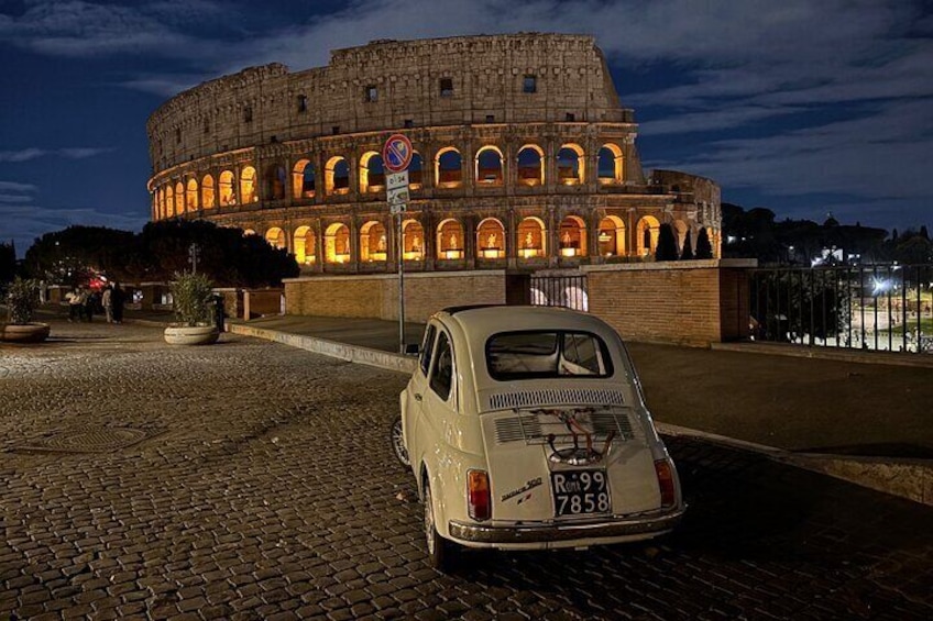 Night Experience in Fiat 500 Pick up Drop off and Local Guide