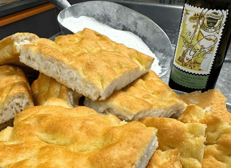 The highlight of your visit is, of course, the olive oil tasting. You’ll be guided by an expert who will introduce you to the nuances of extra virgin olive oil. With three different oils to sample, you will learn how to identify their unique flavours and aromas. From the delicate and fruity notes of the local Grignano variety to the robust and bold flavours of other regional oils, each sample tells a storey of the land and the people who have nurtured it. The tasting is accompanied by a selection of traditional bites, allowing you to experience how these exquisite oils elevate local cuisine.