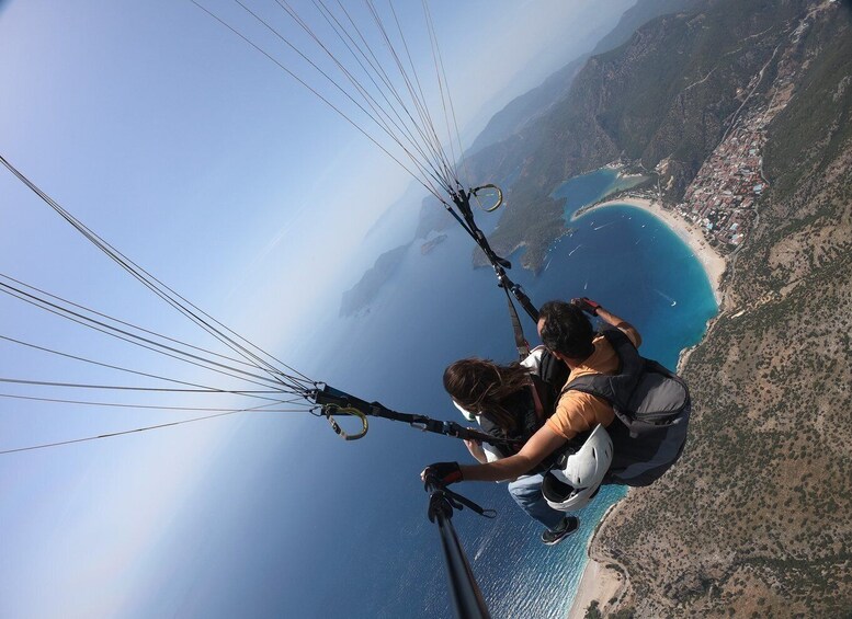 Fethiye Paragliding Oludeniz flight is an exciting activity. Tandem Paragliding is an adrenaline-filled flight as well as a great introduction to this sport. Our pilots, as certified and experienced people, can offer you manoeuvres that increase the dose of adrenaline. Of course if you want it too.