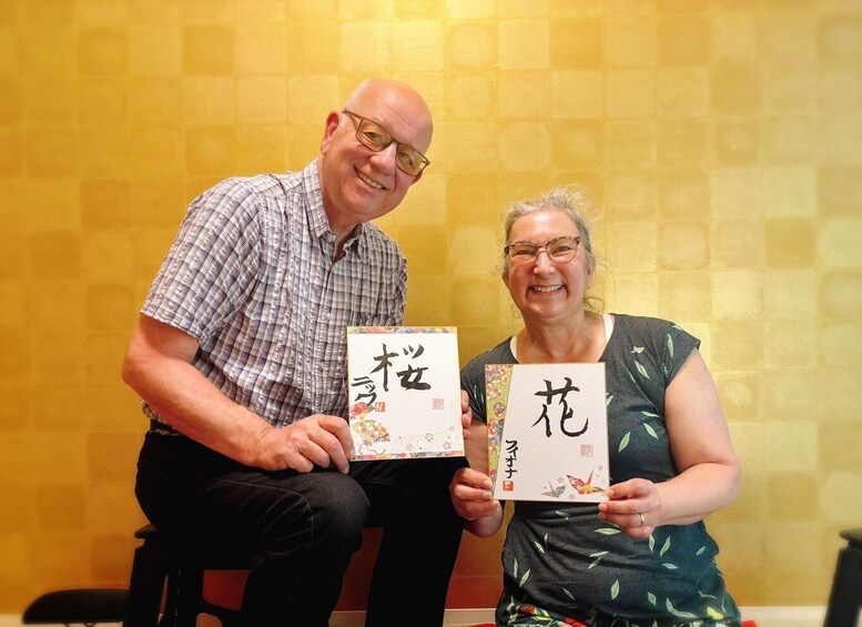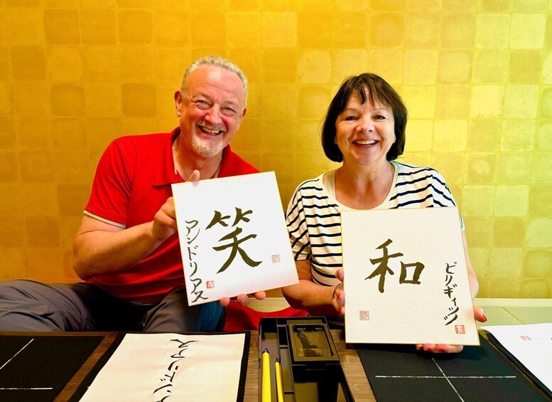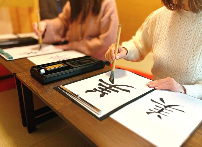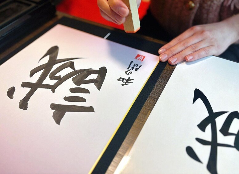 ■In the calligraphy lesson, first, kindly select the “theme” you would want to write today. Please tell me your favourite letters and words. We can also suggest the best Kanji to express yourself. After that, we will give you a detailed lecture about basic practices to be applied. Finally, please choose your favourite piece of coloured paper from the various types and print it out. To finish, write your name in Japanese characters, stamp your initials, and you're done! (For young children, we also offer water calligraphy, which prevents hands and clothes from getting dirty.)