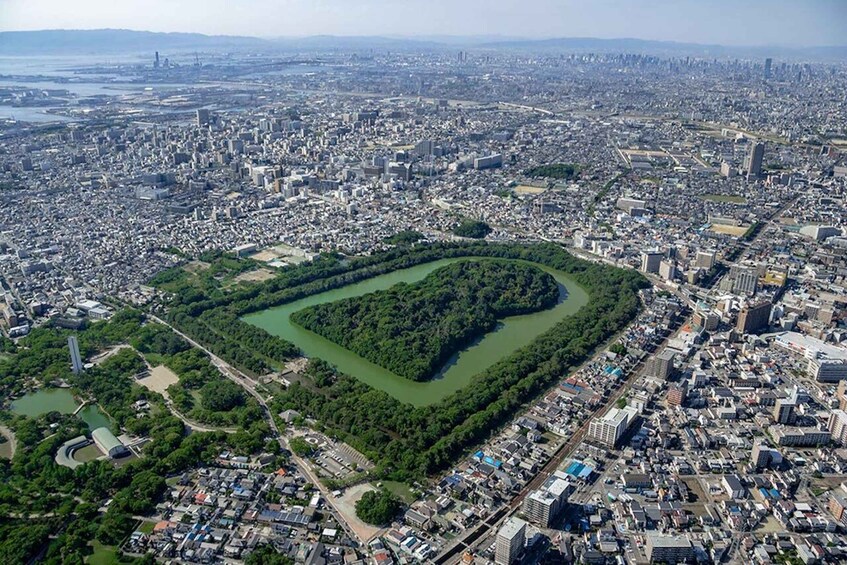 Soar high in the sky above Osaka as you get the best view of the city skyline and world heritage site of Mozu-Furuichi Kofun from the large windows of the helicopter. Discover ancient Osaka from a unique bird's eye perspective and enjoy the thrill of a helicopter flight. This is a rare chance to see the world heritage from the sky.