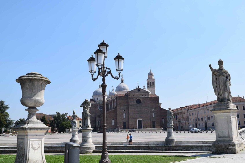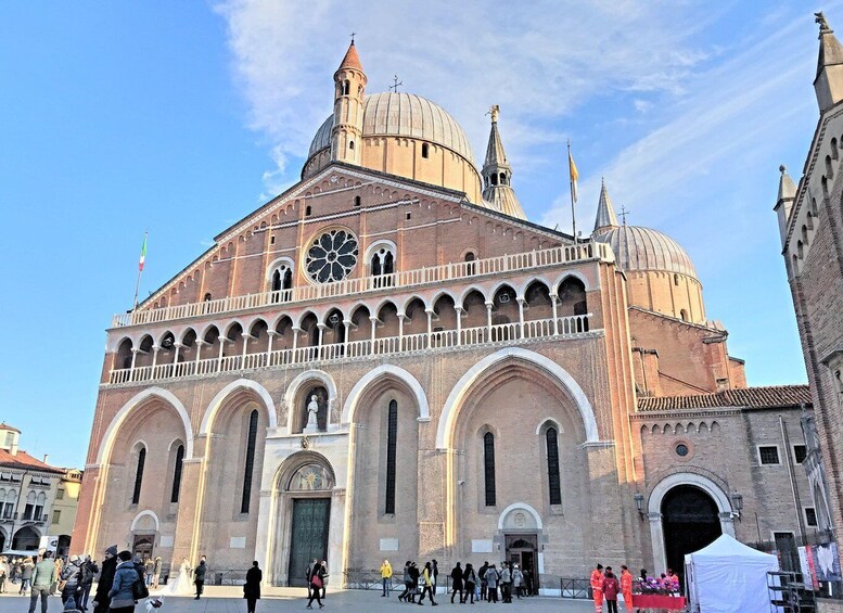 The itinerary continues to the Duomo di Padova (Cattedrale di Santa Maria Assunta) for a brief interior and exterior visit, followed by an exterior stop at the imposing Chiesa di Santa Giustina, hearing stories of its significant ties to the Franciscan movement and the city's ancient history.