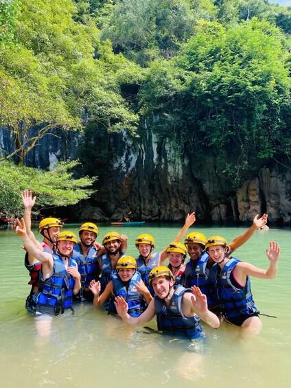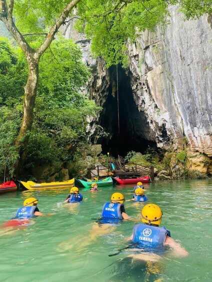 Here you can enjoy activities such as ziplining across the river, swimming, kayaking, and exploring the cave with a helmet and headlamp. One of the highlights is the natural mud bath inside the cave, where you can float in mineral-rich mud before returning to the river for more water activities.
