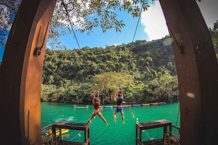Water-landing zipline, buggy ride, kayaking, SUP & water games on the Dark Cave River.