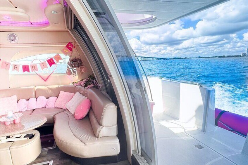 Pink Yacht Charter Barbie Maxum Miami Yacht Rental