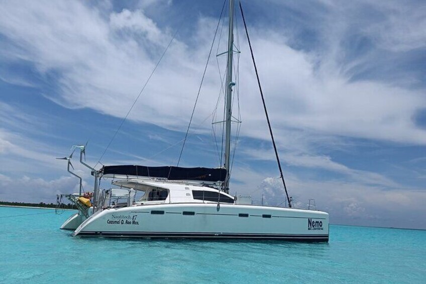 Large Deluxe Catamaran Sail & Snorkel Charter to Famous El Cielo in Multilingual