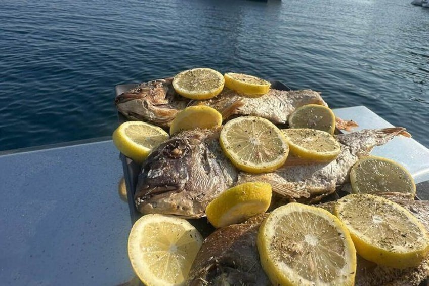 Santorini: Private Catamaran Cruise to Volcano with BBQ & Drinks