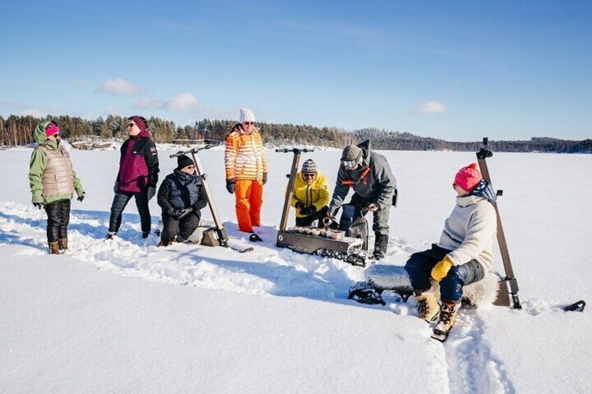 Private Electric Snow Scooter Safari and Ice Fishing in Puumala