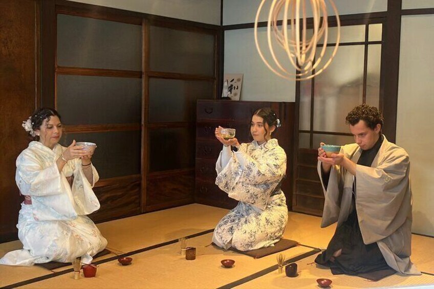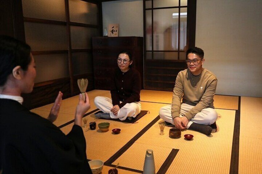 Start your experience by entering a charming Kyoto townhouse built over 100 years ago, where the quiet atmosphere invites you to slow down. You will be guided onto the tatami, a traditional space that has been part of Japanese daily life for centuries. Become familiar with the world of the tea ceremony as our English-speaking host introduces its purpose and spirit in a clear, beginner-friendly way. You will watch a traditional demonstration of matcha preparation, observing how each movement is performed with care and intention. Afterwards, you will prepare your own bowl of matcha and enjoy a quiet, meditative moment, allowing yourself to fully immerse in the essence of Japanese tradition. Throughout the ceremony, every utensil you use is a finely made, handcrafted piece created by skilled artisans, carrying the depth and beauty of Japanese culture. Our company was founded on a deep respect for traditional artisanship and the belief that these works can remind us of kindness and mindfulness. We are honoured to share these artworks with you and your loved ones as a meaningful memory of Japanese culture.