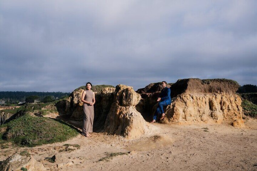 1HR sunset Mendocino: 1 hour private photoshoot capturing your best moments in Mendocino. This session includes 45 fully edited pictures.