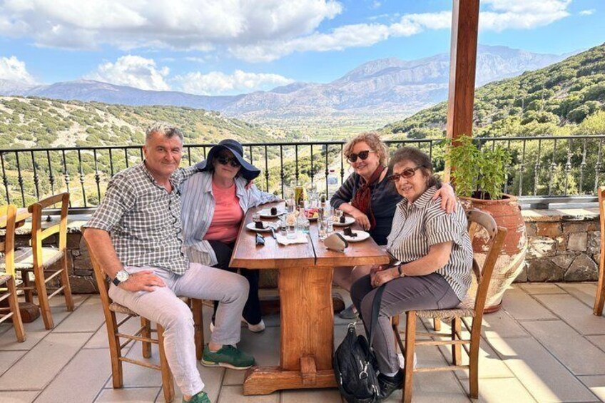 Enjoy a relaxed lunch at a traditional family-run taverna in Kera village, at the heart of the Lasithi Plateau. Here, Cretan hospitality is heartfelt and the food is prepared just as it has been for generations. Dishes are made with local produce, home-pressed olive oil, fresh vegetables, and seasonal ingredients from the surrounding farms. Savour authentic Cretan flavours—slow-cooked meats, handmade pies, fresh salads, goat in tomato sauce and homemade wine—served in a warm, welcoming atmosphere where locals still gather. It’s more than a meal; it’s a genuine taste of rural Crete and a moment to slow down and enjoy traditional island life.