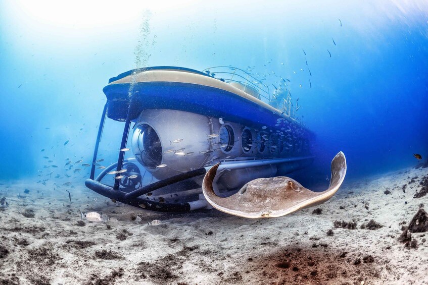 Once on board the jolly “Sub Fun Cinco,” you will dive down to a depth of approximately 100 feet (30 metres). Look out at the abundant fish, such as flute fish, octopus, barracuda, parrot fish, and the pride of the seas, a family of sting rays.