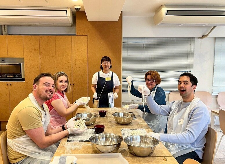 Along the way, you’ll stop at a local supermarket to check out the ingredients for your ramen. Our tour guide will explain the ingredients we use for the ramen we make on that day. Next, hop on a train to a modern kitchen studio, where you'll learn to make ramen from scratch! With guidance from our English-speaking instructor, you'll prepare the broth, make the noodles, and bring everything together.