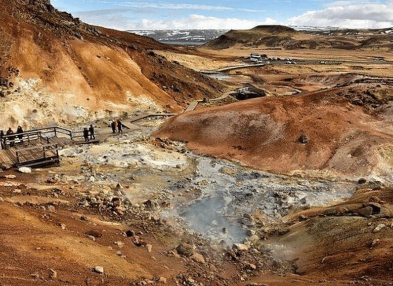 Our next stop is Seltún Geothermal Area, where you'll experience the full power of Iceland's geothermal activity. The area is filled with bubbling mud pools, steam vents, and colourful mineral deposits. It's a truly unique and unforgettable experience.