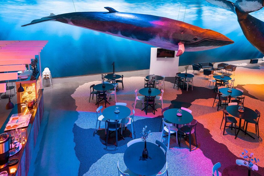 All ticket holders are welcome to join the daily guided tours in English at 11:00 AM and 3:00 PM. On your way out, stop by the Whale Cafe for a drink and a snack beneath the whales.