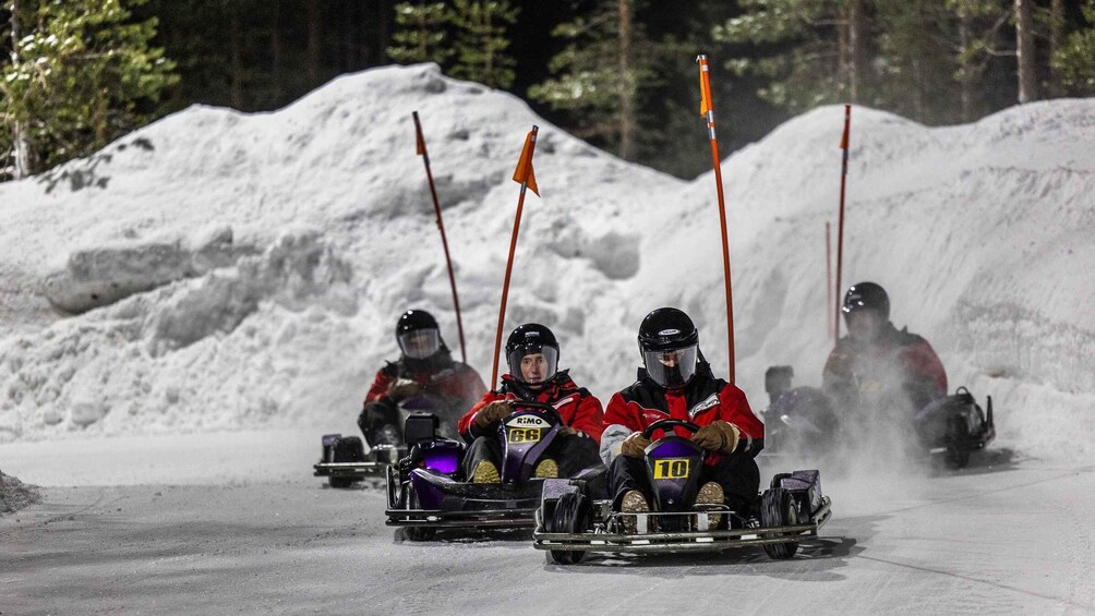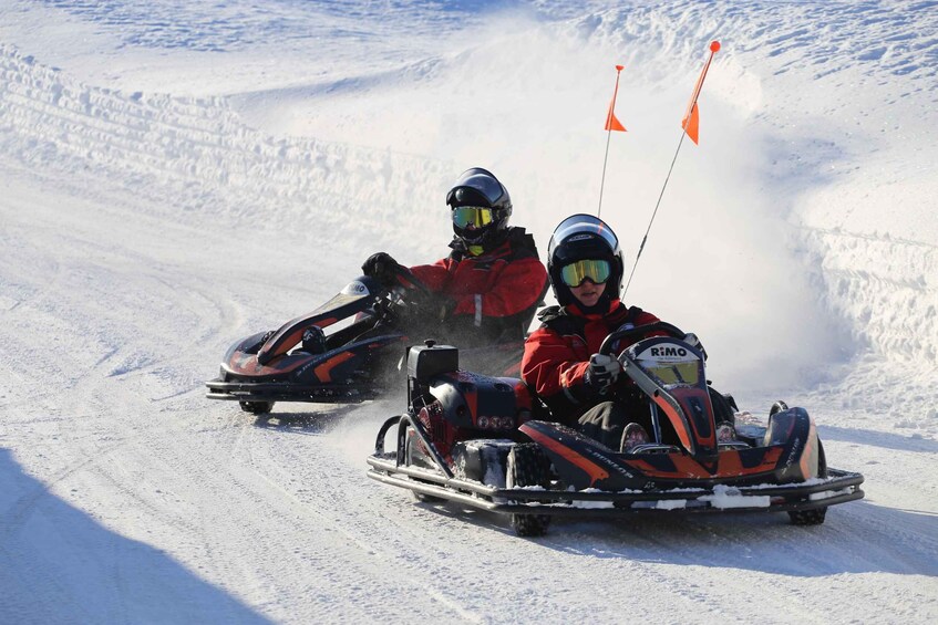 Explore the adrenaline-pumping world of ice karting, where driving on ice is not just an experience, but a heart-pounding journey. With two 15-minute driving sessions, master the art of ice karting and navigate the frozen track like a true Finn.