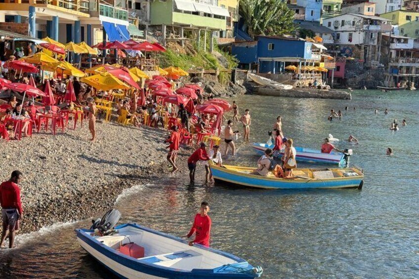 Experience the vibrant spirit of Gamboa favela in Salvador. Immerse yourself in the local culture as you explore its lively streets and hidden gems. Indulge in a delicious meal at Dona Suzana's, savouring the authentic flavours of homemade Bahian cuisine. Afterwards, head to the nearby favela beach and soak up the sun, enjoying a refreshing swim in the crystal-clear waters. This unique adventure promises a combination of gastronomic delights, cultural immersion, and beach relaxation, providing a truly unforgettable experience in Gamboa favela.